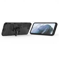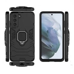 Obrnený odolný kryt Ring Armor čierny určený pre mobil Samsung Galaxy S21 FE je vynikajúce riešenie pre ľudí, ktorí hľadajú dokonalú ochranu svojho zariadenia. Kryt funguje dobre v extrémnych podmienkach, chráni zadnú časť telefónu, boky a displej. Kryt ma vstavaný držiak v tvare prstenca na zadnej strane puzdra.