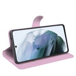 Peňaženkové puzdro Litchi bledoružové – Samsung Galaxy S21 FE