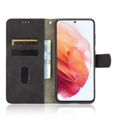 Peňaženkové puzdro na Samsung Galaxy S21 FE chráni telefón pred poškriabaním aj poškodením následkom pádu. Peňaženkové puzdro Solid čierne z kvalitnej syntetickej kože zaujme tiež svojím vzhľadom, príjemným povrchom a mäkkosťou. Vnútorná vanička je z pevného TPU, ktorý prispieva k bezpečnosti smartfónu a výborne sa prispôsobí jeho tvaru. Toto knižkové puzdro na mobil s magnetickým zavieraním vám umožní využívať telefón bez obmedzení bez toho, aby ste ho z neho museli vyberať.