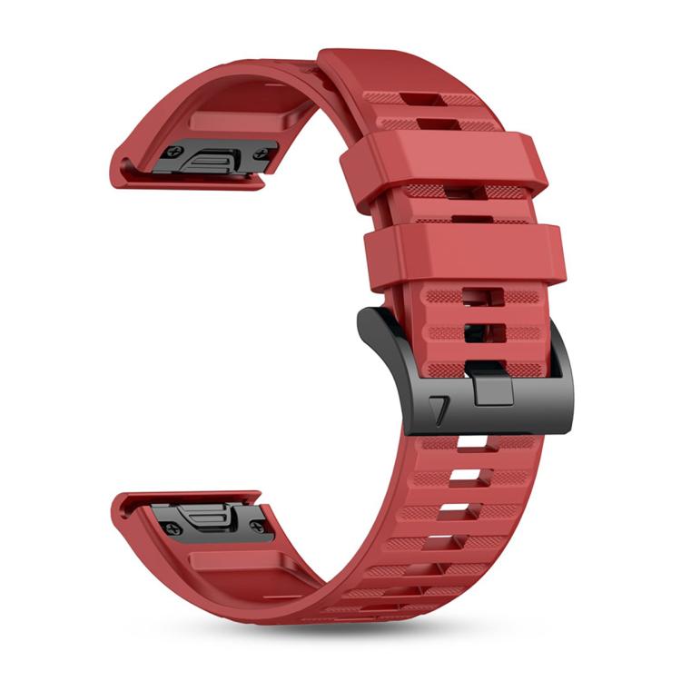 Remienok Solid Wristband červený presne prispôsobený pre hodinky Garmin 26mm zaručene prinesie príjemný nový vzhľad vášho zariadenia. Materiál použitý pre zhotovenie tohto remienku je obľúbený silikón. Ide o odolný materiál príjemný na dotyk. Zaručuje odolnosť voči opotrebovaniu a pohodlné nosenie bez ohľadu na vaše aktivity. Tento materiál vyniká vodeodolnosťou, odolnosťou voči potu a nezávadnosťou pre ľudskú pokožku.